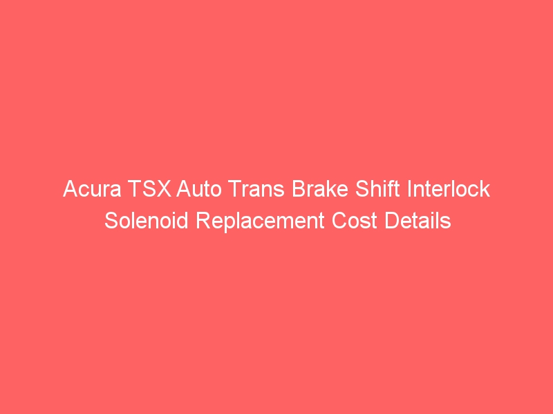 # Your Guide to the Acura TSX Auto Trans Brake Shift Interlock Solenoid Replacement Cost