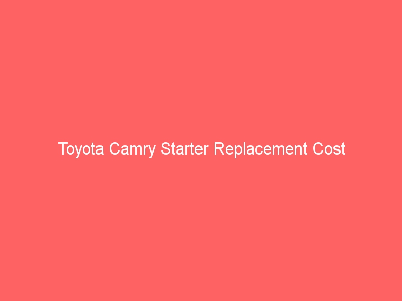 How Much Does It Cost to Replace a Starter in a Toyota Camry?